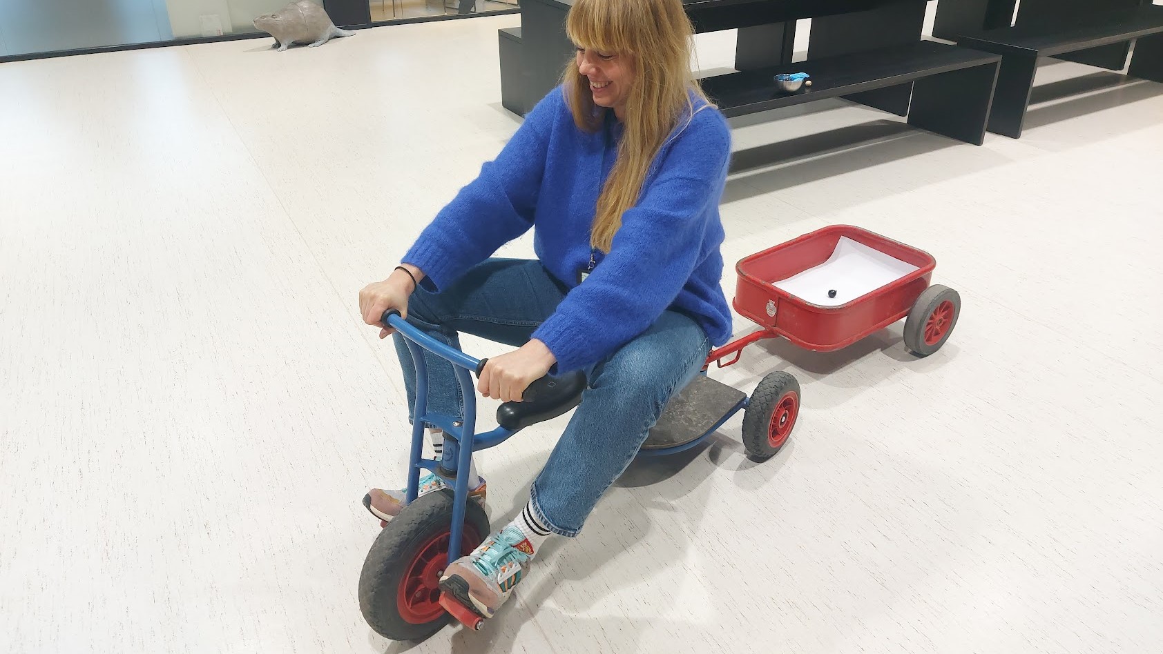 Under Småspill-arrangementet Kartfaring skal barna sykle på trehjulssyklar. På bagasjebretta vil det ligge ark og ei malt kule som trillar rundt og lagar spor etter kvart som sykkelen svingar.