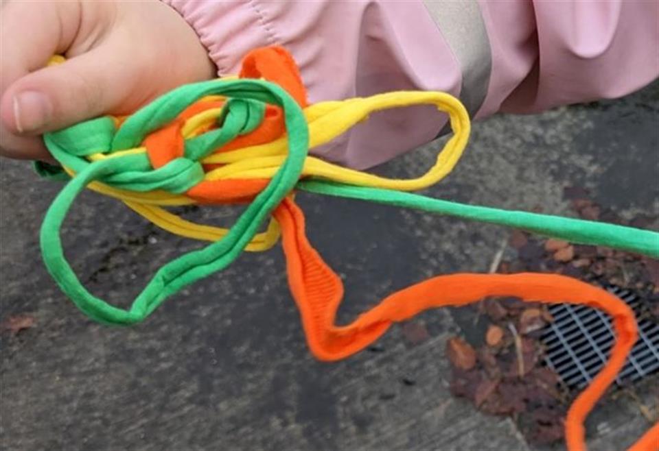 – Barna får vere med å sette spor ved hjelp av tråd på ei stor felles flat i form av industrigjerde. Det er ikkje forhandsbestemt kva som skal skje, men nokre rammer har eg laga på førehand i form av tråden og trådkvaliteten som er valt ut, underlaget og det at vi skal nytte uterommet. Kvar enkelt sitt bidrag bidrar til heilskapen.
