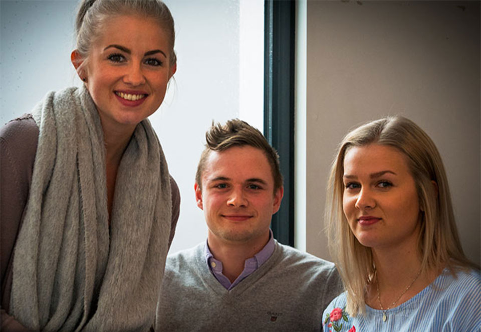 Mette Kirkhus Dale, Arne Habbestad og Stine Jernæs Johnsen er i innspurten med økonomi og administrasjon i Haugesund. No går dei mot master.