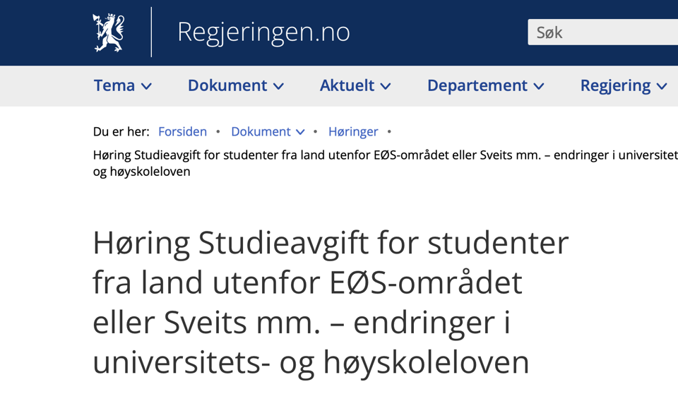 Denne hausten har debatten gått høgt om Regjeringa sitt framlegg i å endre universitets- og høgskulelova og opne for innføring av studieavgift for studentar utanfor EØS og Sveits. Det konkrete forslaget er å innføre ei studieavgift frå hausten 2023.