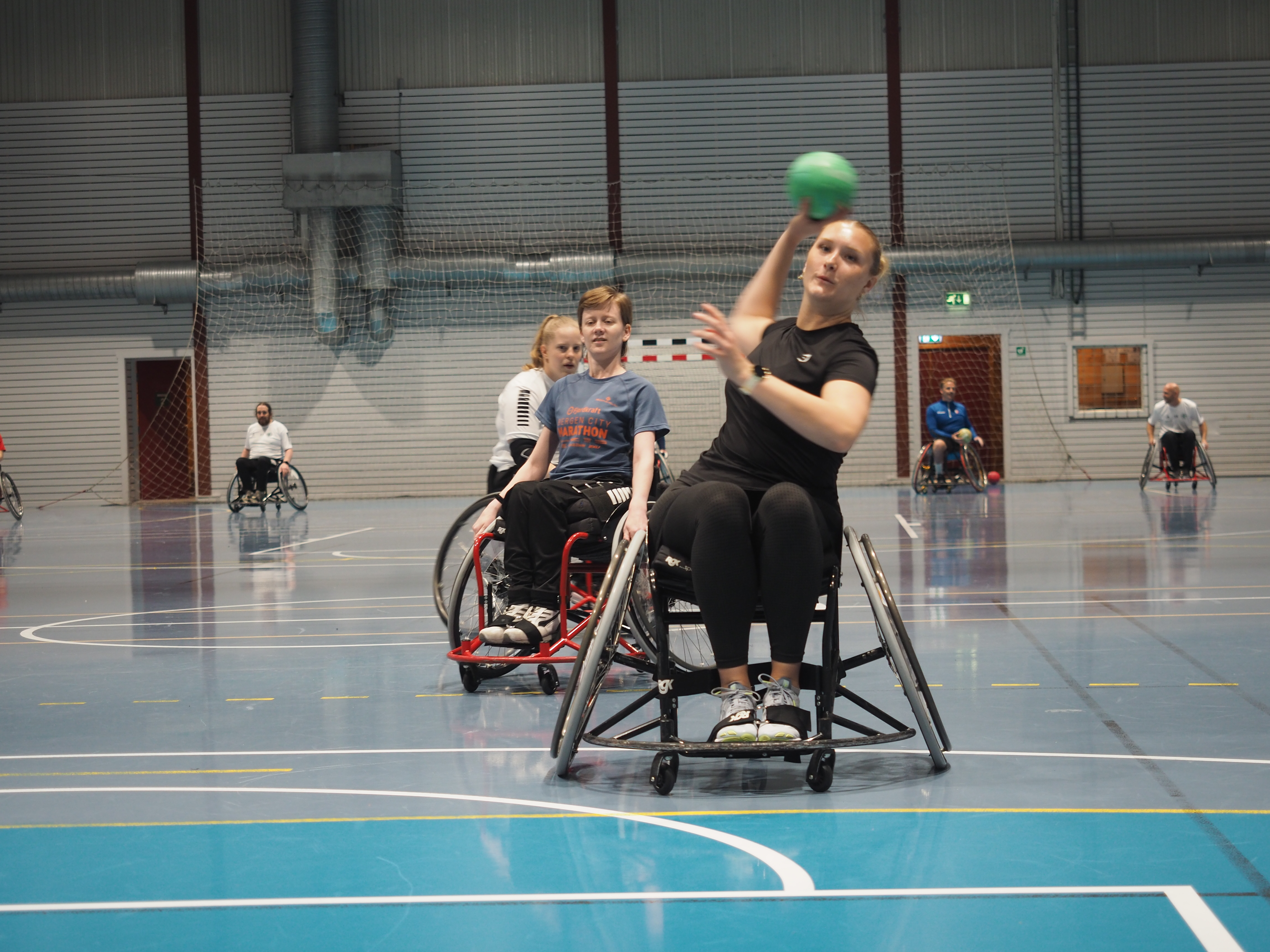 Førsteamanuensis Unni Moen involverer fysioterapistudentar i fleire folkehelseprosjekt som ein del av eit emne om helsefremjande og førebyggande arbeid. Eit av prosjekta handla om førebygging av belastningsskader for utøvarar på Mathopen rullestolhandballlag.