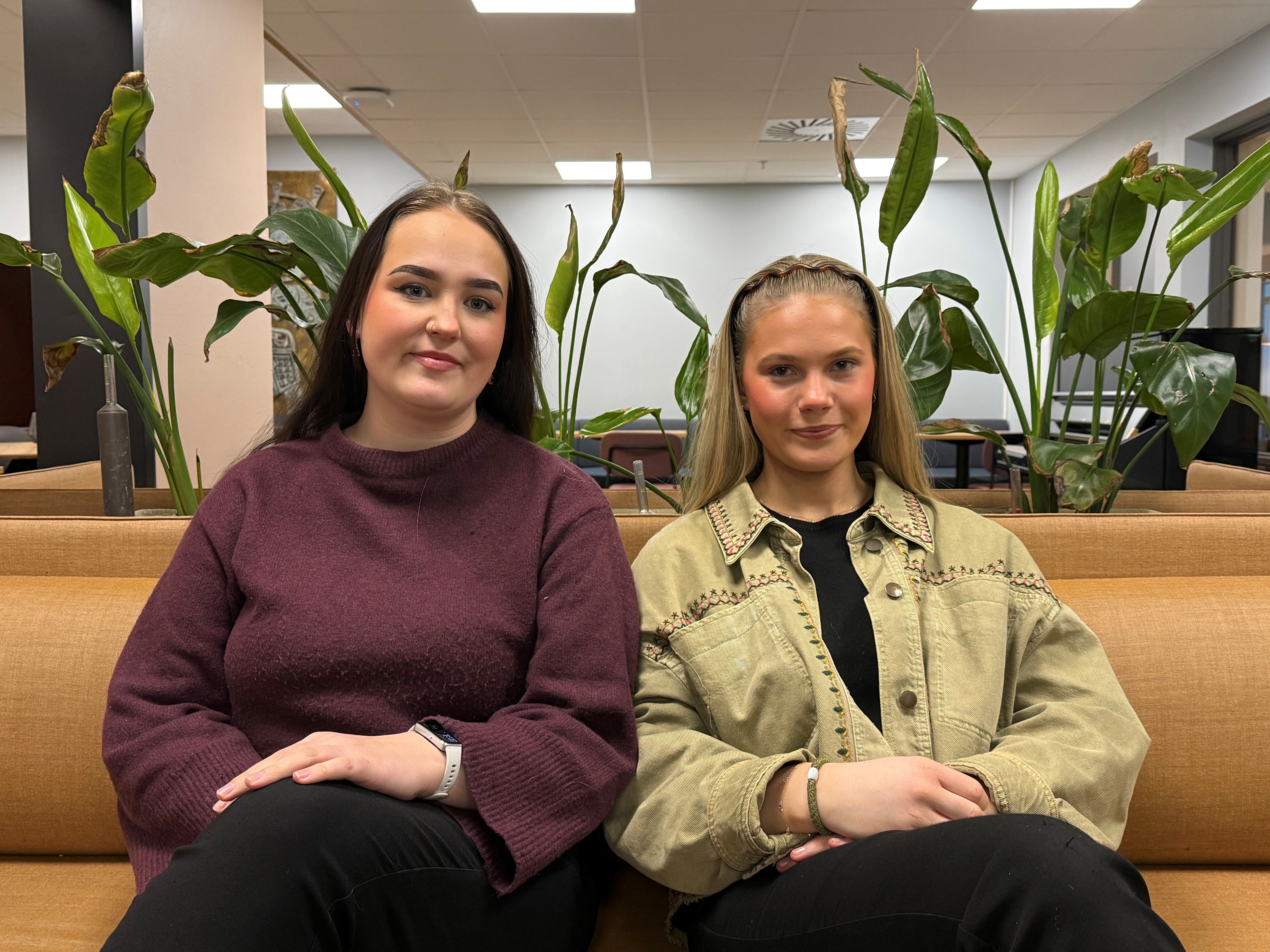 Martha Lunde (21) og Åse Helén Johansen (24) studerer barnehagelærar på Stord. Dei fortel at det er lett å bli kjent med både medstudentar og tilsette.