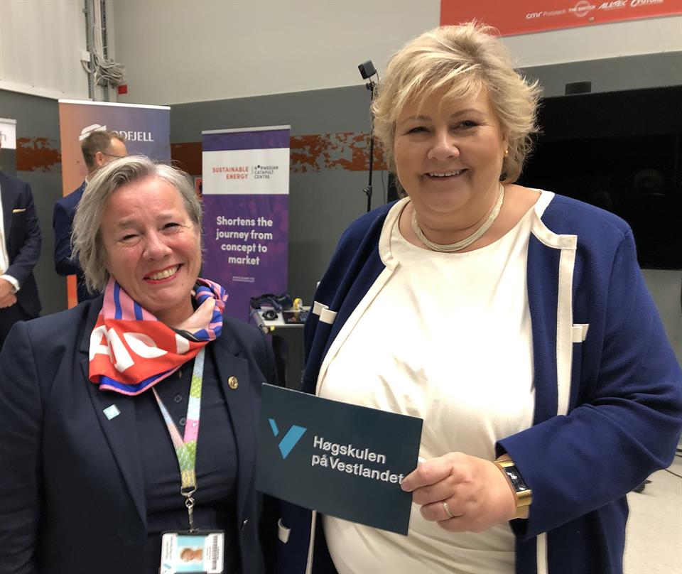 Prorektor for Samhandling i HVL, Liv Reidun Grimstvedt, er styremedlem i Katapult Sustainable Energy. I dag fikk hun noen ord med statsminister Erna Solberg om HVL sitt arbeid med samhandling.
