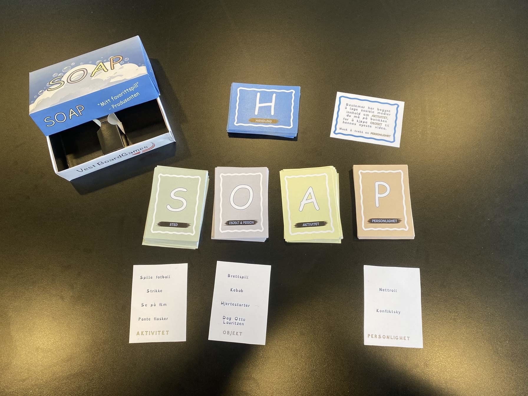 Spelet SOAP er eit lettbeint rollespel, der ein skal spele ut ulike handlingsforløp. Ein trekk kort innanfor kategoriane stad, objekt, aktivitet og personlegdom, derav forkortinga SOAP.