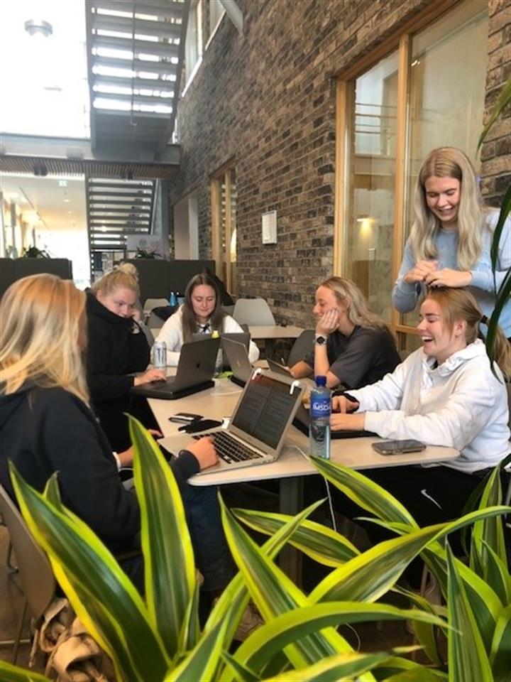 Den nye kantina er godt tilrettelagt for at studentane kan sitte å jobbe. Foto: Katrine Sele