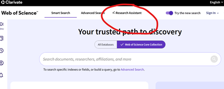 I WoS Research Assistant kan man også stille et spørsmål i naturlig språk, eller man kan velge å bli guidet gjennom ulike prosesser med enten å forstå et tema, gjennomføre en litteraturstudie eller å velge riktig tidsskrift for publisering. Svarene er basert på innholdet i Web of Science og presenteres som en oppsummering med referanser til de aktuelle kildene. I tillegg kan man velge å se grafiske fremstillinger og temakart.