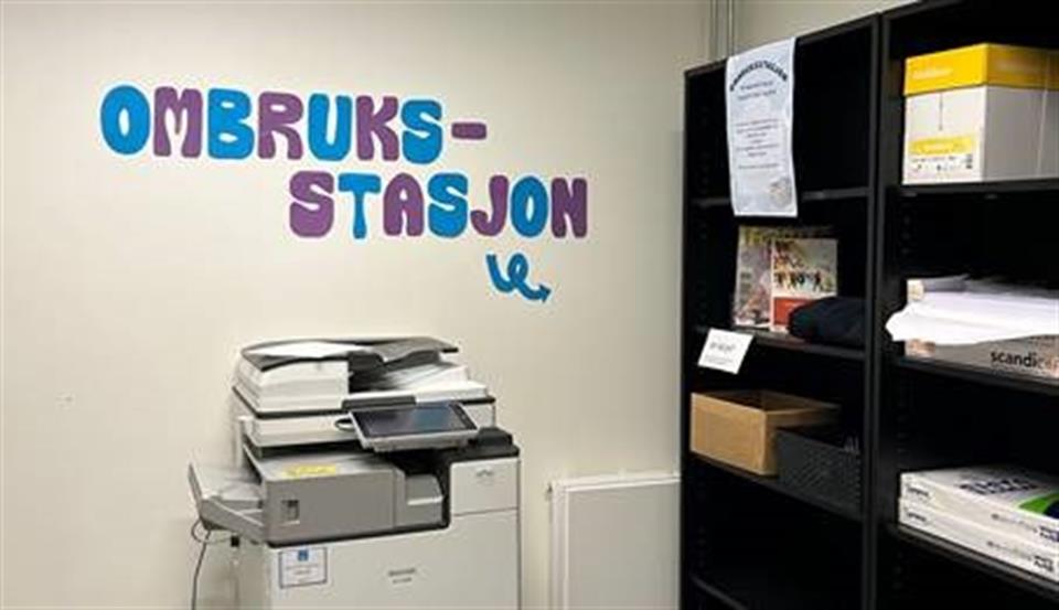 I Sogndal har biblioteket oppretta ein ombruksstasjon som er å finne på kopirommet til studentane. Her legg vi ting og tang som er attgløymd, men ikkje spurd etter på ei god stund, og bøker eller tidsskrift som biblioteket har sletta frå samlingen. Meininga med dette er at dei som vil kan forsyne seg, så kan tinga få et nytt liv!