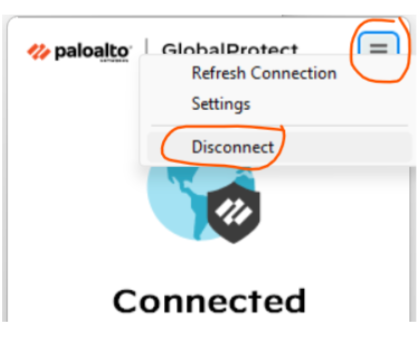 It will then show that you are Connected. To disconnect, click Disconnect in the menu at the top right of the VPN agent.