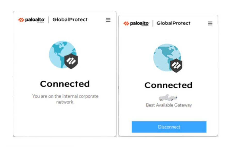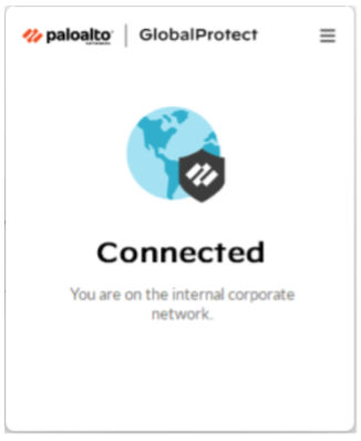 On campus, it will also be logged in, but without an active VPN tunnel, since you are internal. The status will appear as follows when on campus and when off campus, respectively: