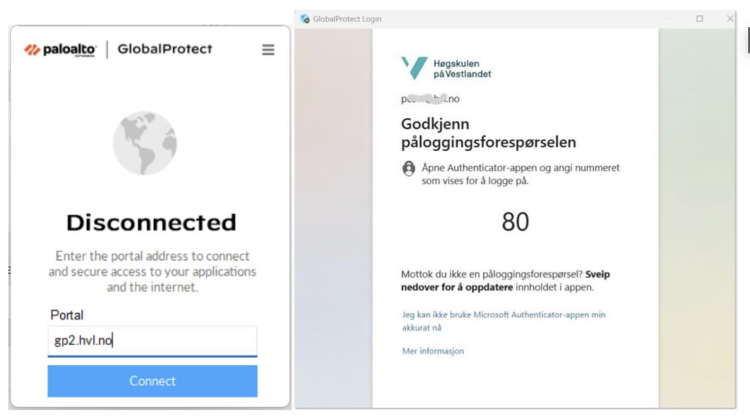 Enter the portal address gp2.hvl.no in the appropriate field and click Connect.