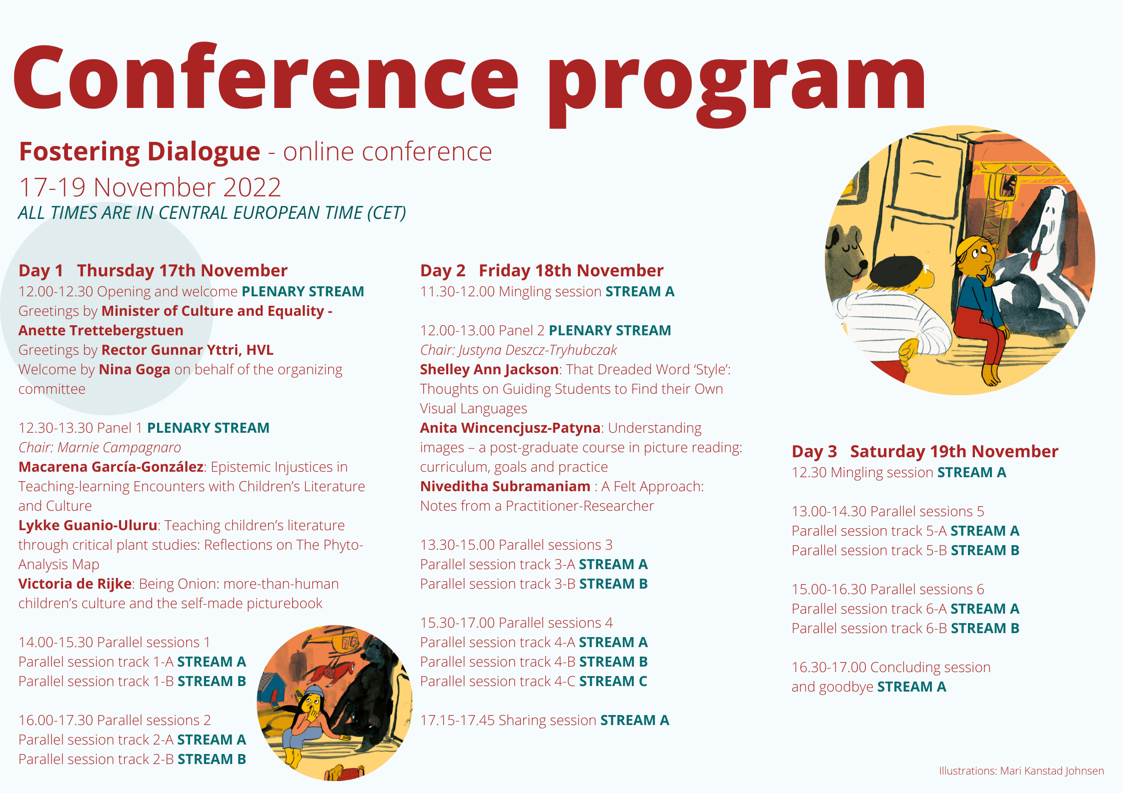 The plenary sessions will be held in a Zoom Webinar, and we welcome you to place questions and comments in the chat for all to see. The parallell sessions will be held in Zoom Meetings and be much more open to interaction and dialogue.