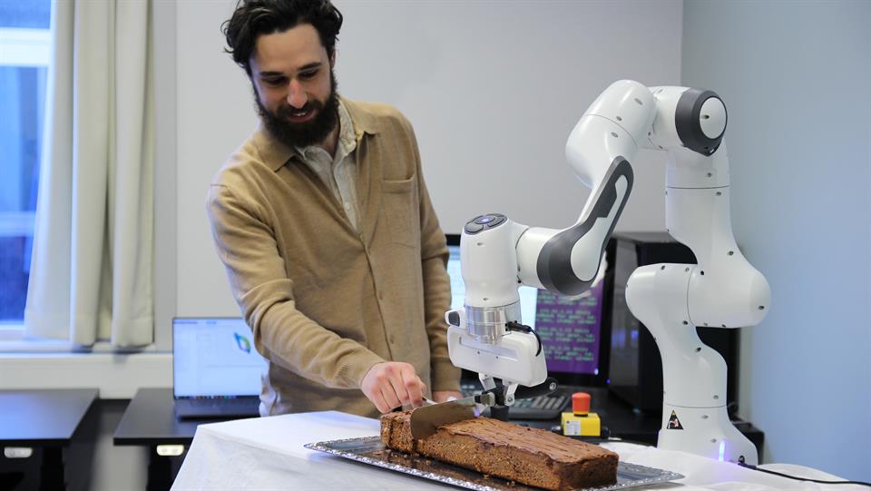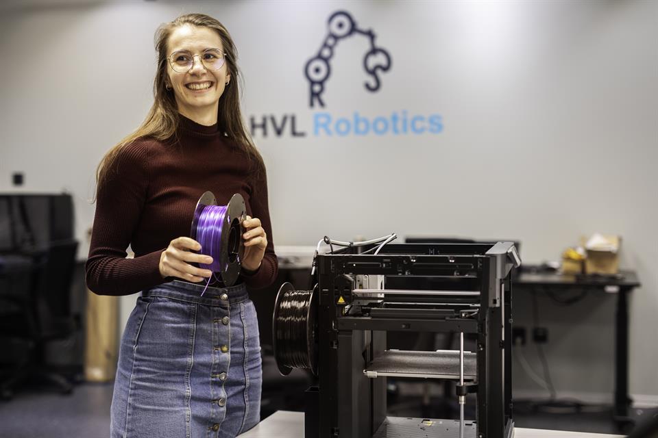 HVL Robotikk har eit toppmoderne forskningslaboratorium med eit breitt spekter av robotarmar og mobile robotar.