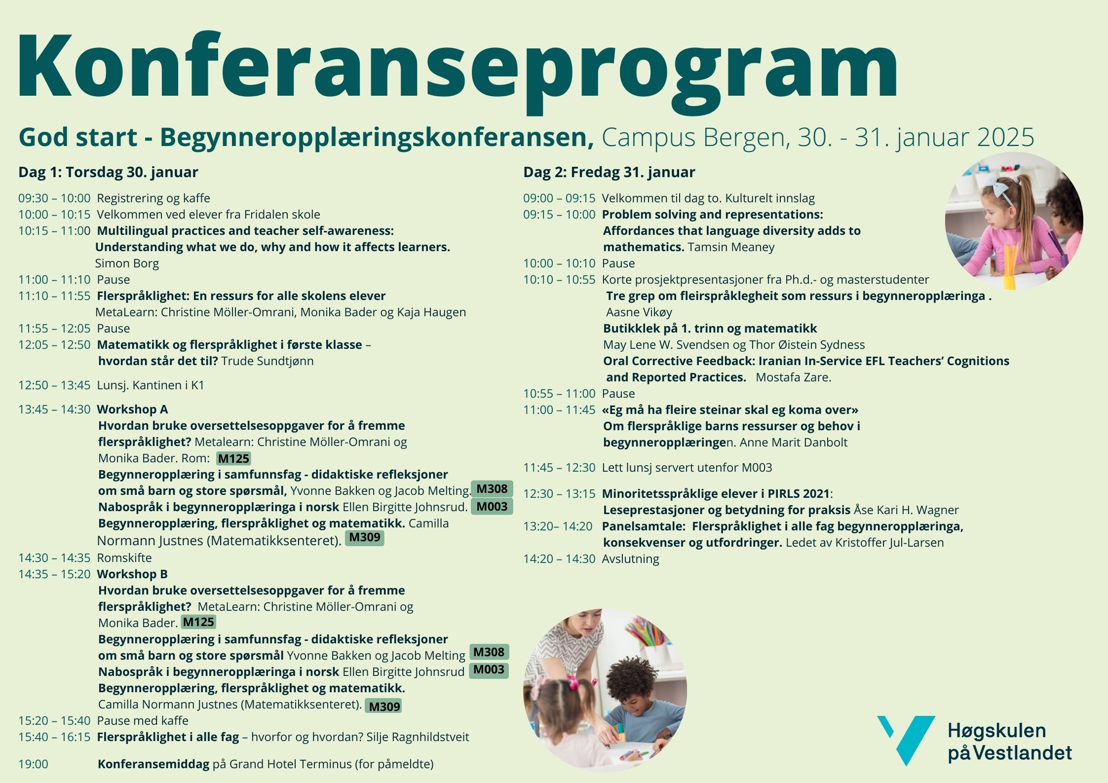 Vi ønsker velkommen til konferanse om fleirspråklegheit i alle fag i skolens begynnaropplæring (1.–4. trinn). Vi vil særleg få fram potensialet som ligg i å sjå fleirspråklegheit som ressurs i alle fag. Konferansedeltakarane får lytte til inspirerande forskarar og delta i workshops og paneldebatt om dette viktige temaet.