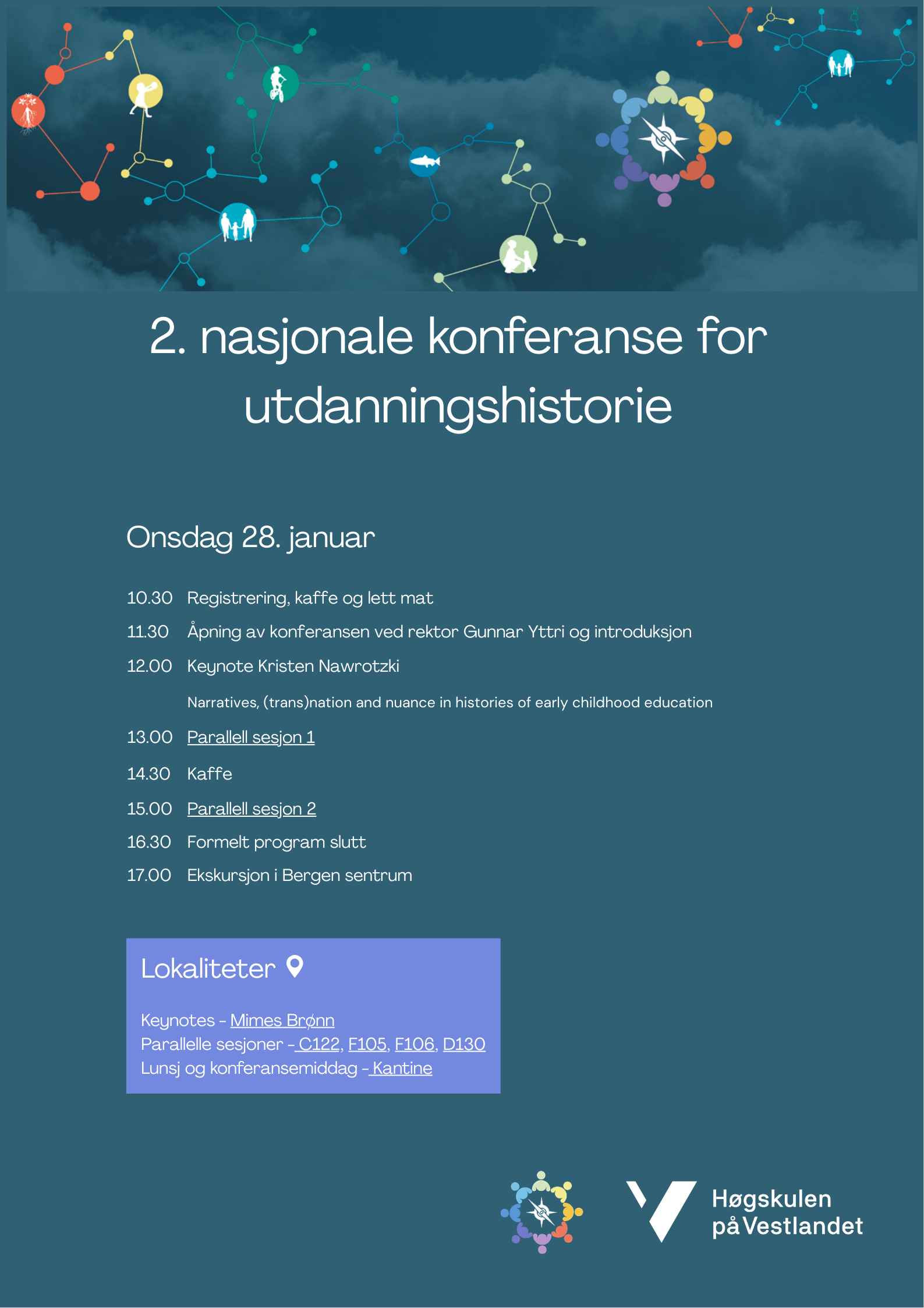 Vi ønsker velkommen til den andre nasjonale konferansen for utdanningshistorie i Norge. Denne gangen vil fagmiljøet rundt BARNkunne – Senter for Barnehageforskning ved Høgskolen på Vestlandet være vertskap for konferansen, som vil finne sted på campus Kronstad, Bergen, 28.-30. januar 2026.