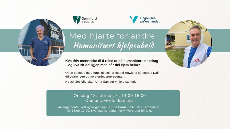 Arrangementet vil også finne stad på Førde bibliotek (Førdehuset) kl. 18.00-19.00. Kveldsarrangementet er ope for alle.