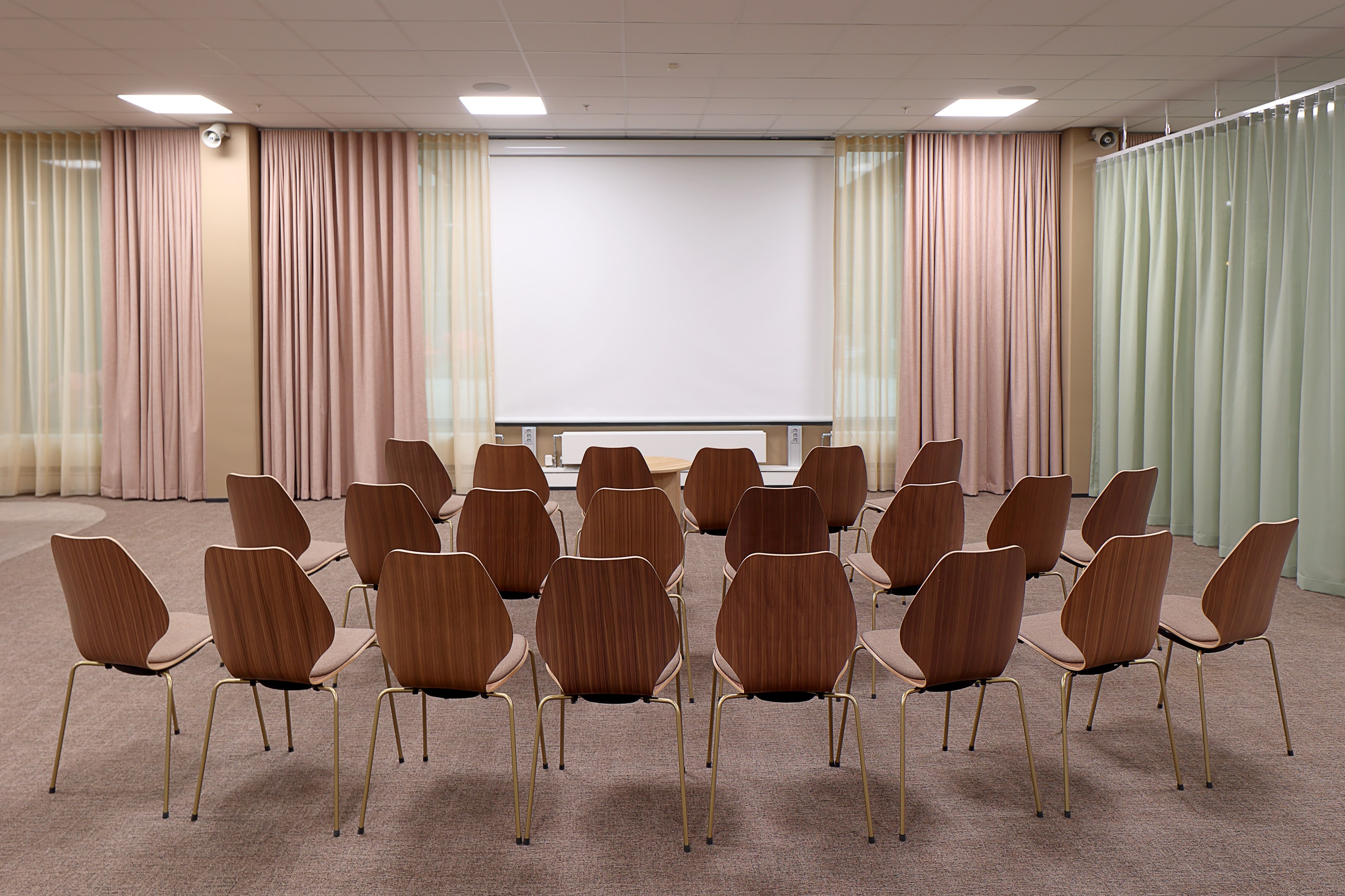 Rommet skal settes tilbake til opprinnelig stand etter bruk, og alt av boss og tomgods skal fjernes. Standardmøblering i rommet er loungeoppsett. Annen møblering står lagret bak gardin ved inngangen mot F-fløyen.