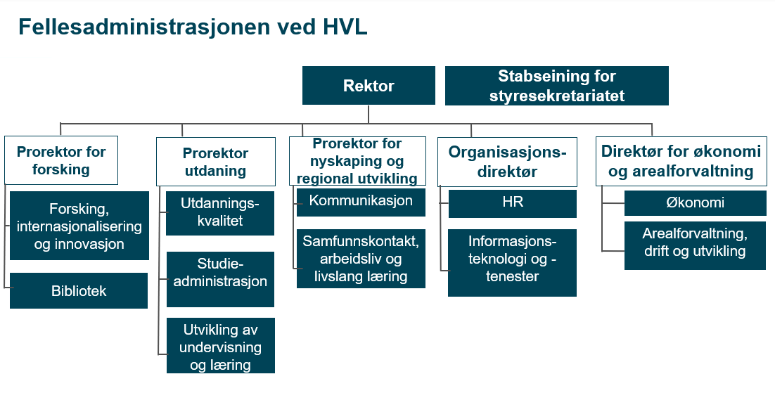 HVL-leiinga er rektor si leiargruppe for drøfting av saker av strategisk betydning for Høgskulen på Vestlandet. Leiargruppa består av prorektorane, dekanane og direktørane: