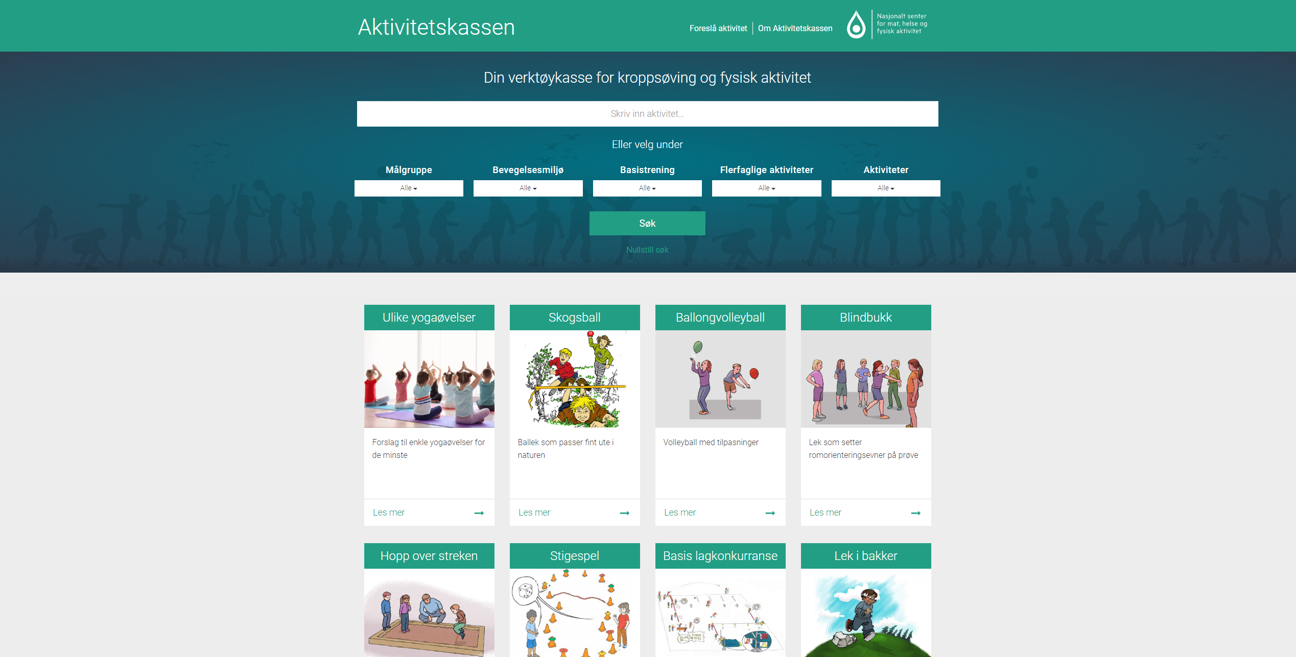 Inneheld i overkant av 300 ulike aktivitetar, og blir drevet av MHFA på oppdrag av Utdanningsdirektoratet. Målgruppa er i hovudsak tilsette i skulen, men den skal og vera nyttig for tilsette i SFO, barnehage og andre som ønsker tips til fysisk aktivitet i kvardagen.