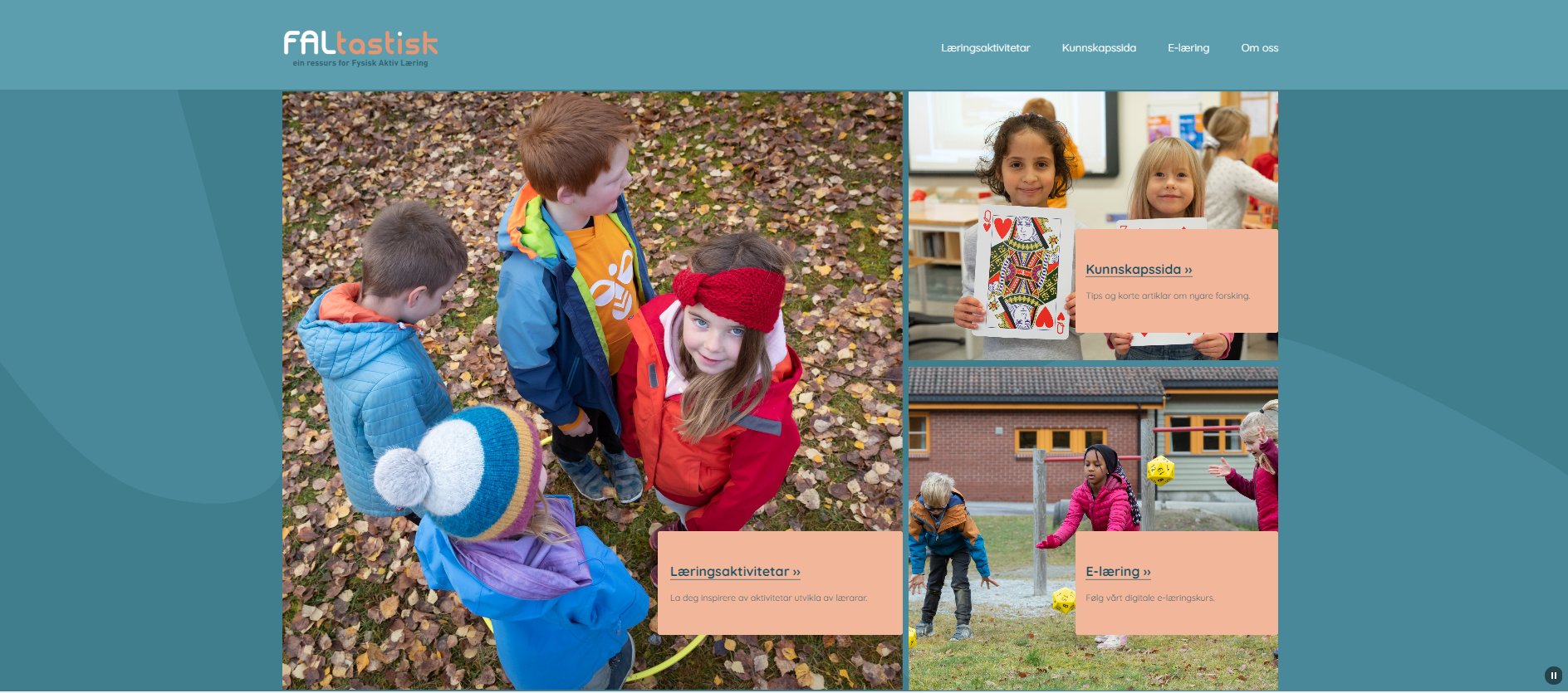 Vår nye nettside om fysisk aktiv læring (FAL) med aktivitetsbase over 100 læringsaktivitetar og artiklar om fal. Her kan du og gjennomføre e-læringskurs om fysisk aktiv læring. Denne nettsida er under utvikling av SEFAL ved HVL.