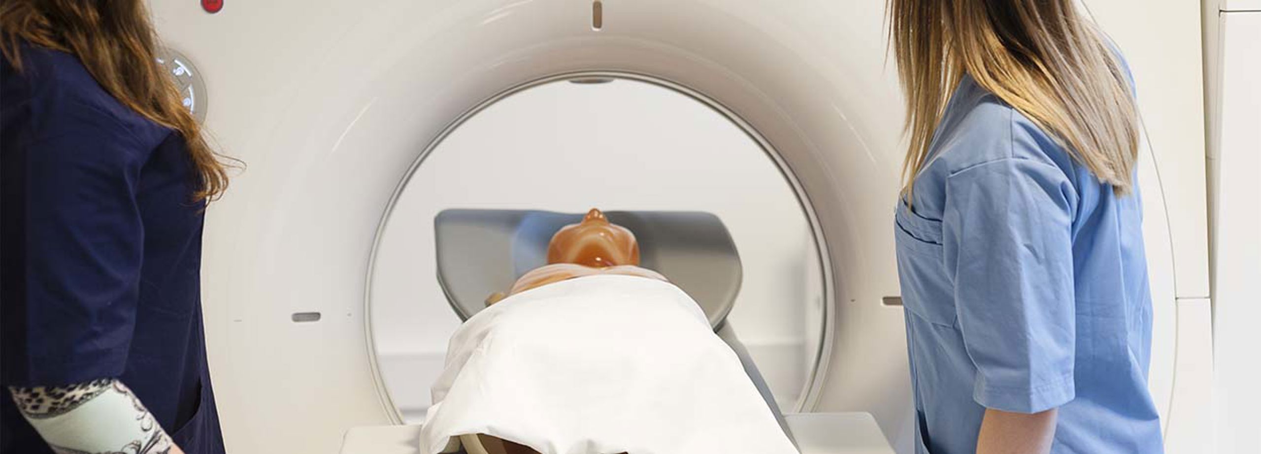 CT-laboratoriet (Siemens Perspective) blir brukt til simulering/øving av CT-undersøkelser av hele kroppen. CT skiller seg fra konvensjonell røntgen ved at CT-maskinen lager snittbilder i ulike plan og 3D-bilder av interesseområdet.