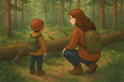 Fra «stakkars treet» til fascinasjon av økosystemet. Det jeg opplever de neste minuttene er en elevene som tar innover seg hvordan naturen ikke bare består av det levende, men det døde også. Hun peker og navngir både planter som mose, bregner og sopp til nedbrytere som snegler, meitemark og maur. Jeg sitter på huk, ved siden av henne, nikker, lytter og hjelper henne med ord og forklaringer som hun ikke klarer å sette ord på. Hun konkluderer med at det som kan fremstå som død og ubrukelig for oss, er en viktig del av det naturlige kretsløpet.