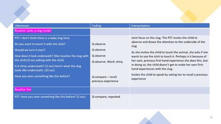 Oppgåva nedanfor handlar om ulike sider ved korleis ein samhandlar i naturvitskaplege samtalar med barn, og korleis du kan bruke transkripsjonar av dialogar med barn til å reflektere systematisk over måten du snakkar og handlar på.