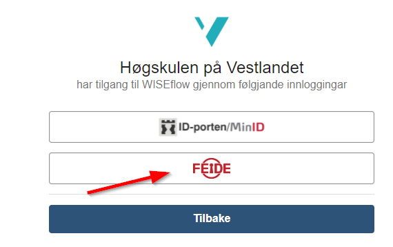Logg på via wiseflow.hvl.no med din HVL-brukarkonto (Microsoft). Om du må velge organisasjon, velg Høgskulen på Vestlandet.