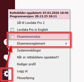 Kan du bruke Lovdata Pro på skuleeksamen? Kvart emne har eigne innstillingar for kva som er tilgjengeleg. Du kan sjekke kva som gjeld for deg ved å logge inn i Lovdata, skru på eksamensmodus og finne emnet ditt under 'Eksamensreglement'. På eksamensdagen blir dette tilgjengelig automatisk.