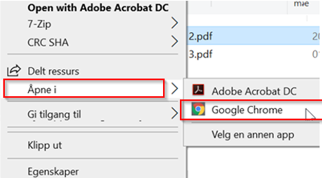 Høgreklikk på PDF-fila. Velg Åpne i og deretter Google Chrome.