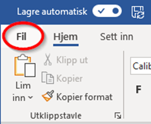 Trykk på fana Fil øvst til venstre i dokumentet ditt.