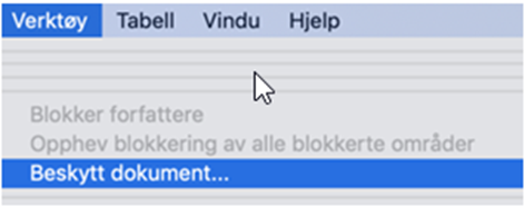 Trykk på verktøy frå menylinja øvst i dokumentet og velg Beskytt dokument.