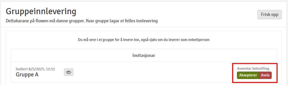 Alle inviterte gruppemedlemmer må enten godta eller avslå invitasjonen for at besvarelsen skal bli levert inn.