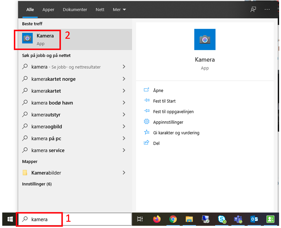 - Søk «Kamera» nede med startmenyen