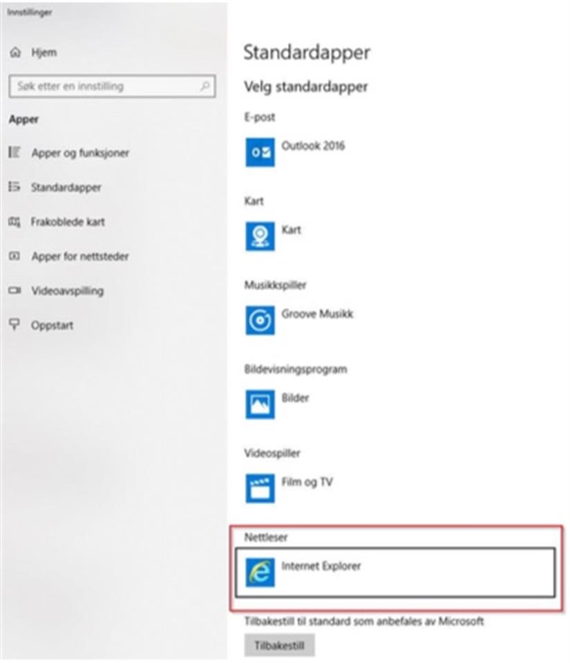 Klikk på forstørrelsesglasset nede til venstre på skjermen og skriv inn «nettleser». Klikk deretter på «Velg en standard nettleser».