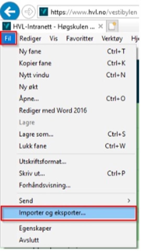 Klikk på «Fil» og deretter «Importer og eksporter...»