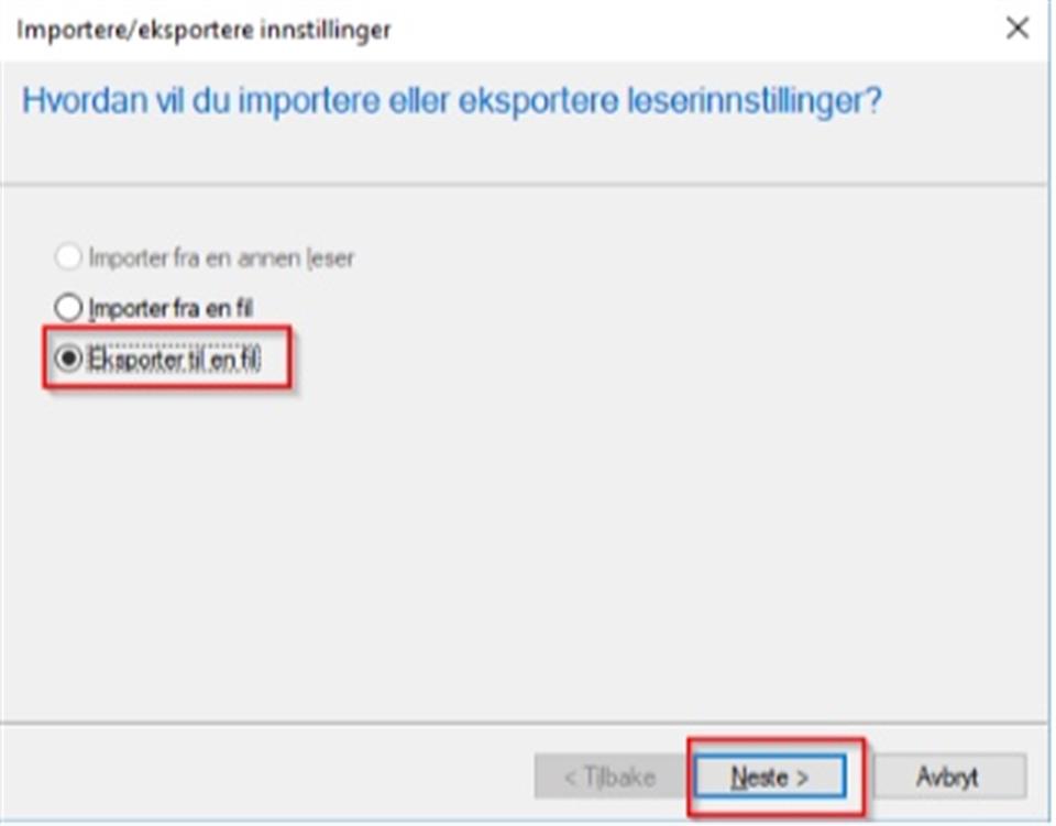 Velg «Eksporter til en fil» og klikk Neste>