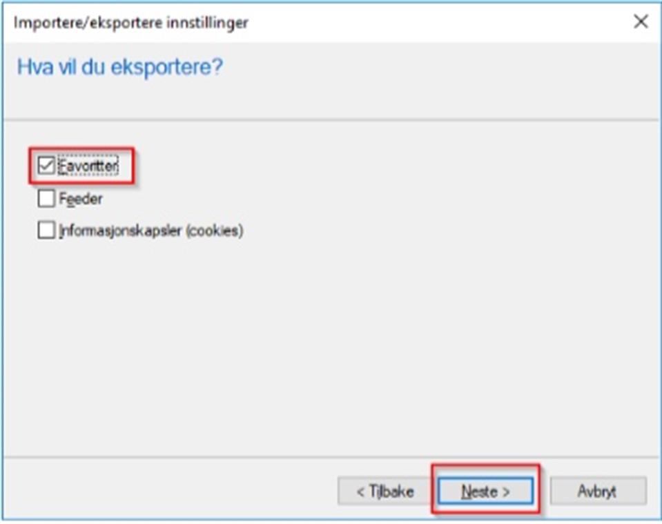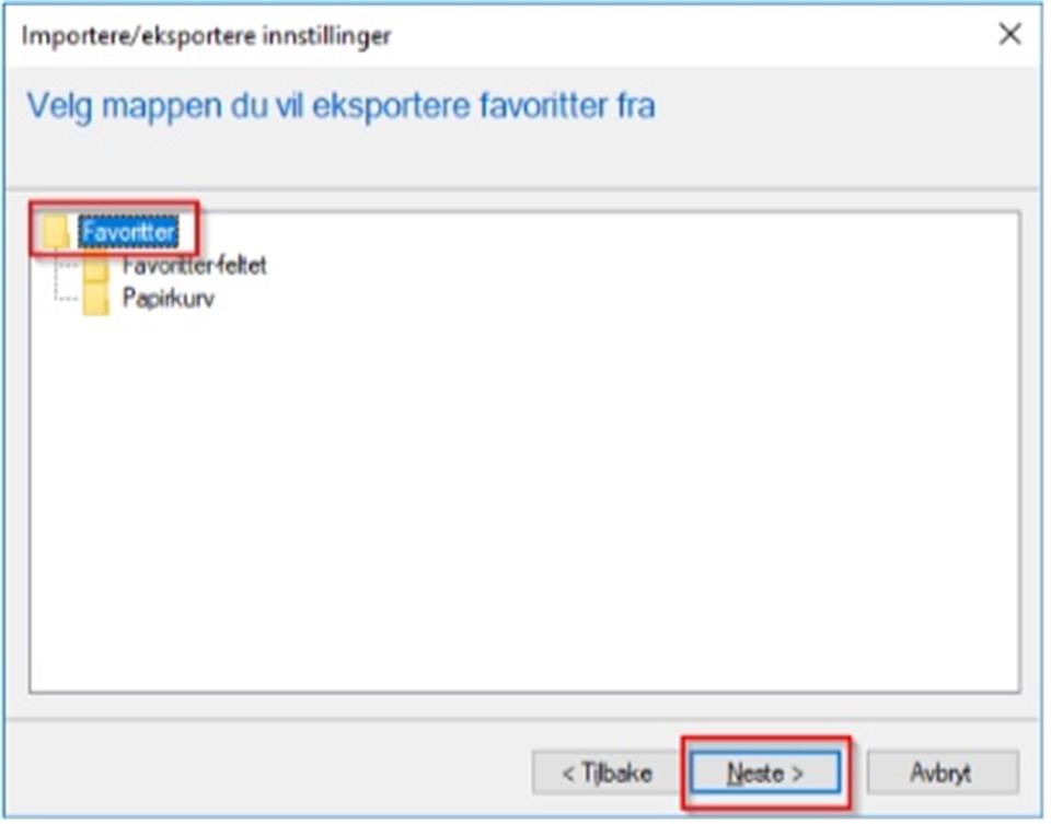 Velg «Favoritter» og klikk Neste>