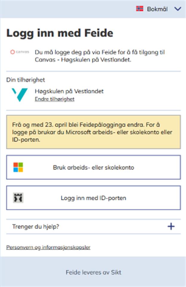 Bruk av Feide for innlogging