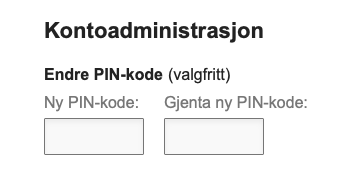 - Endre pinkode i kontoinnstillingane
