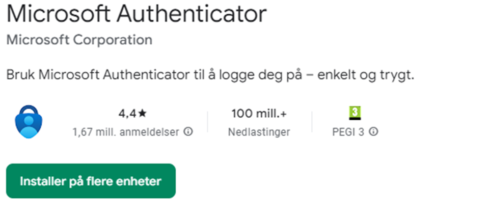 - For å bruke multifaktor pålogging må du ha ein sikkerheitsapp. HVL anbefaler å laste ned Microsoft Authenticator, men det er mogleg å bruke andre sikkerheitsappar (t.d. Google Authenticator eller ein annan føretrekt app). Microsoft Authenticator kan lastast ned frå Google Play Store for Android telefoner eller App Store for iPhone. Det er kostnadsfritt å laste ned og bruke.