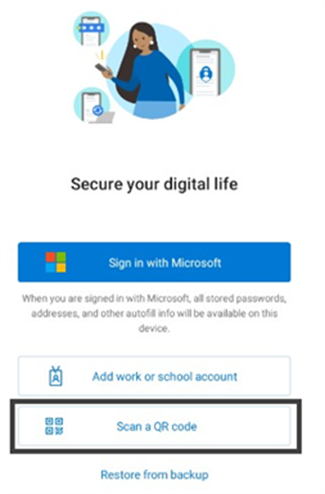 Når du startar opp Microsoft Authenticator-appen, velg "Skan ein QR-kode".