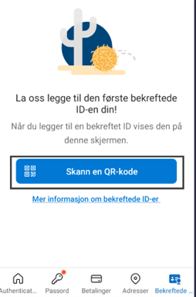 For brukere som allerede har appen fra før, gå til bekreftede ID-er og trykk på «Skann en QR-kode».