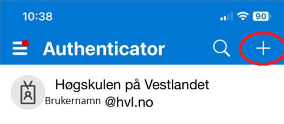 Dersom du har brukt Authenticator-appen til andre ting, kan du trykke på plusstegnet øverst til høgre for å gå vidare.