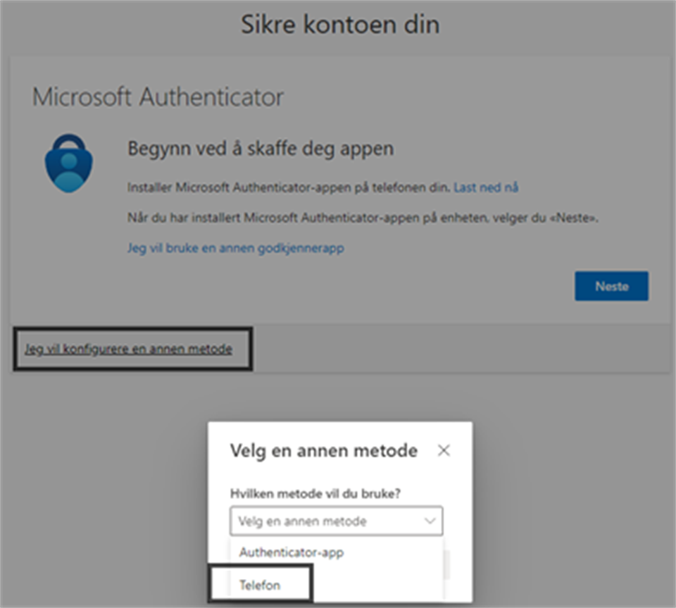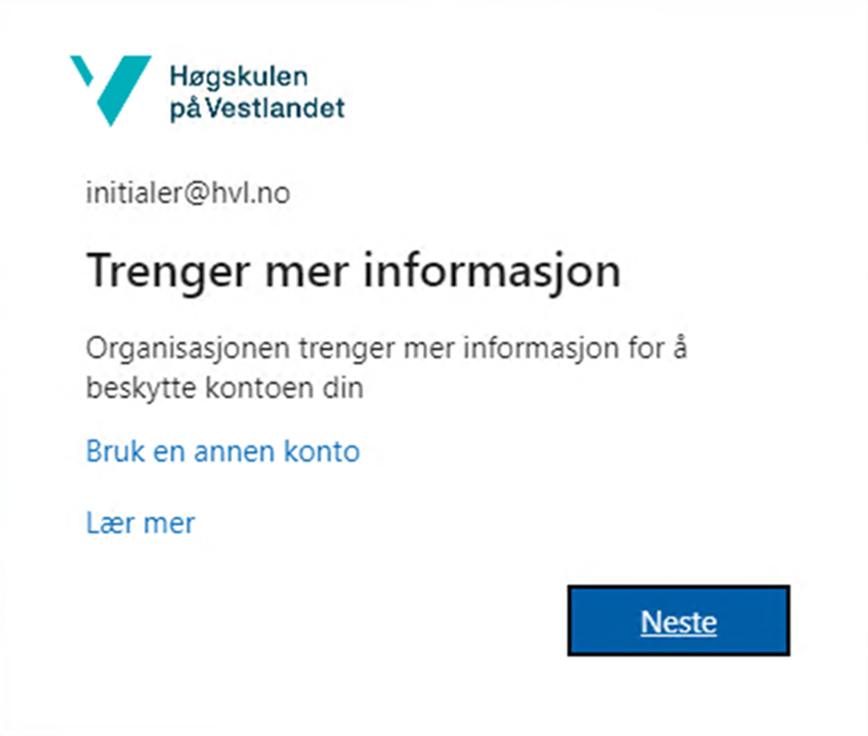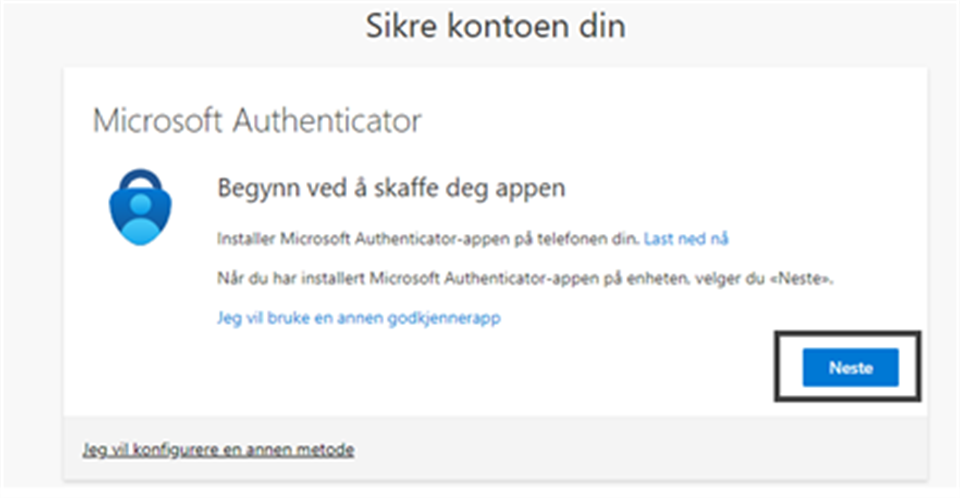 For å bruke Microsoft Authenticator, trykk på Neste.