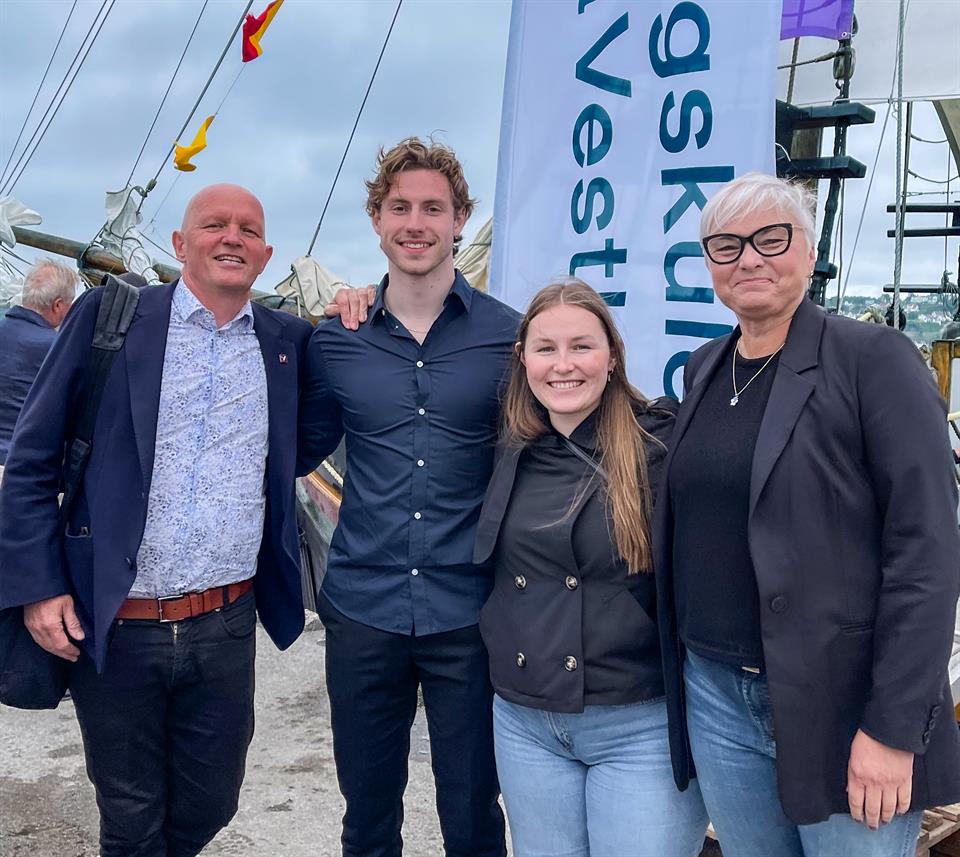Arendalsuka 2024. T.v.: rektor Gunnar Yttri, arbeidsutvalgmedlem Roy Martin Pettersen, studenttingleder Andrea Grutle, prorektor for utdanning, Anne-Grethe Naustdal.
