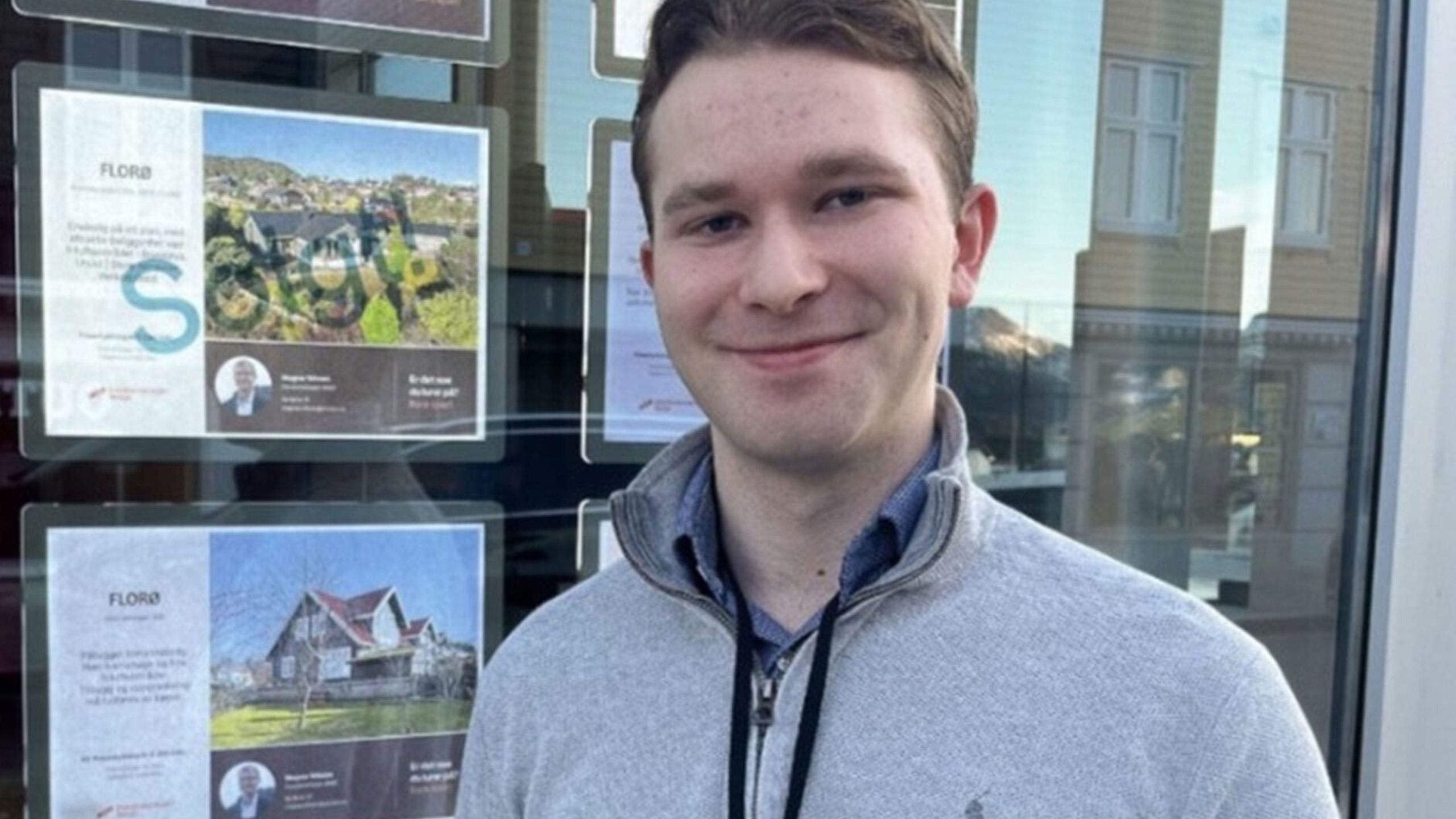 Fredrik har dei siste månadane vore trainee hos Eiendomsmegler Norge i heimbyen Florø. Det beskriv han som utruleg lærerikt og viktig.