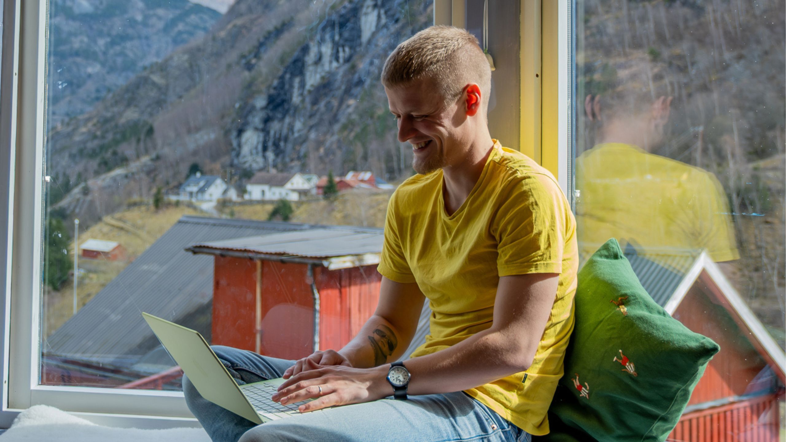 – Eg har god tid til å ete frukost saman med familien før eg set meg ned for å ha nettundervisning. Og om dottera mi skulle finne på å krype forbi i bakgrunnen, er ikkje det noko farleg heller, ler han.