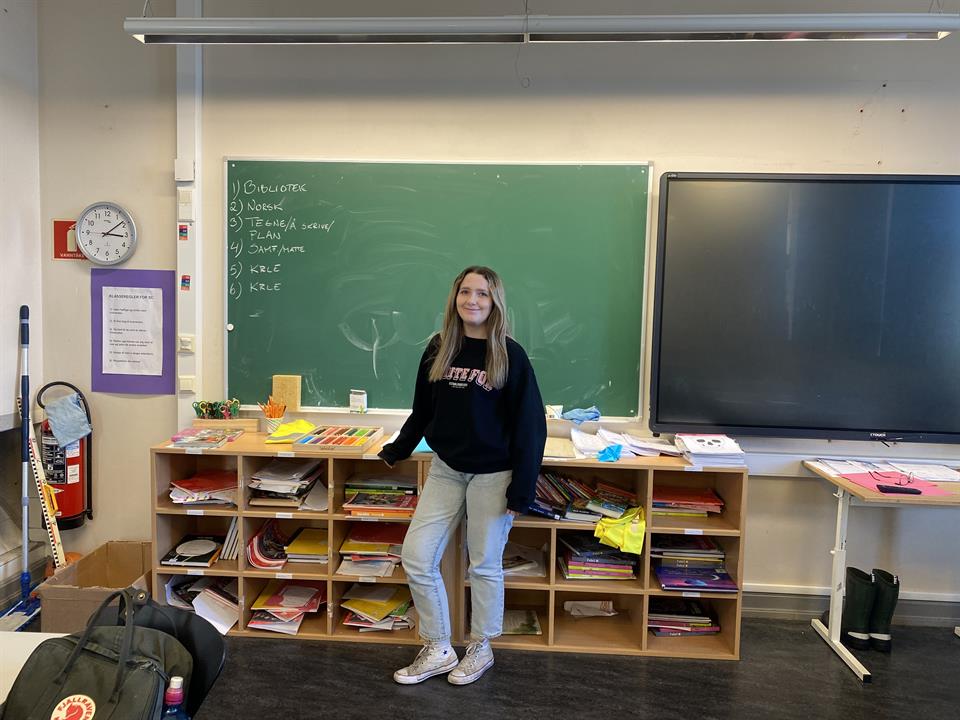 Den positive og aktive 22-åringen har en utdanning fra før, som barne- og ungdomsarbeider, som hun nå bygger på med lærerutdanning.