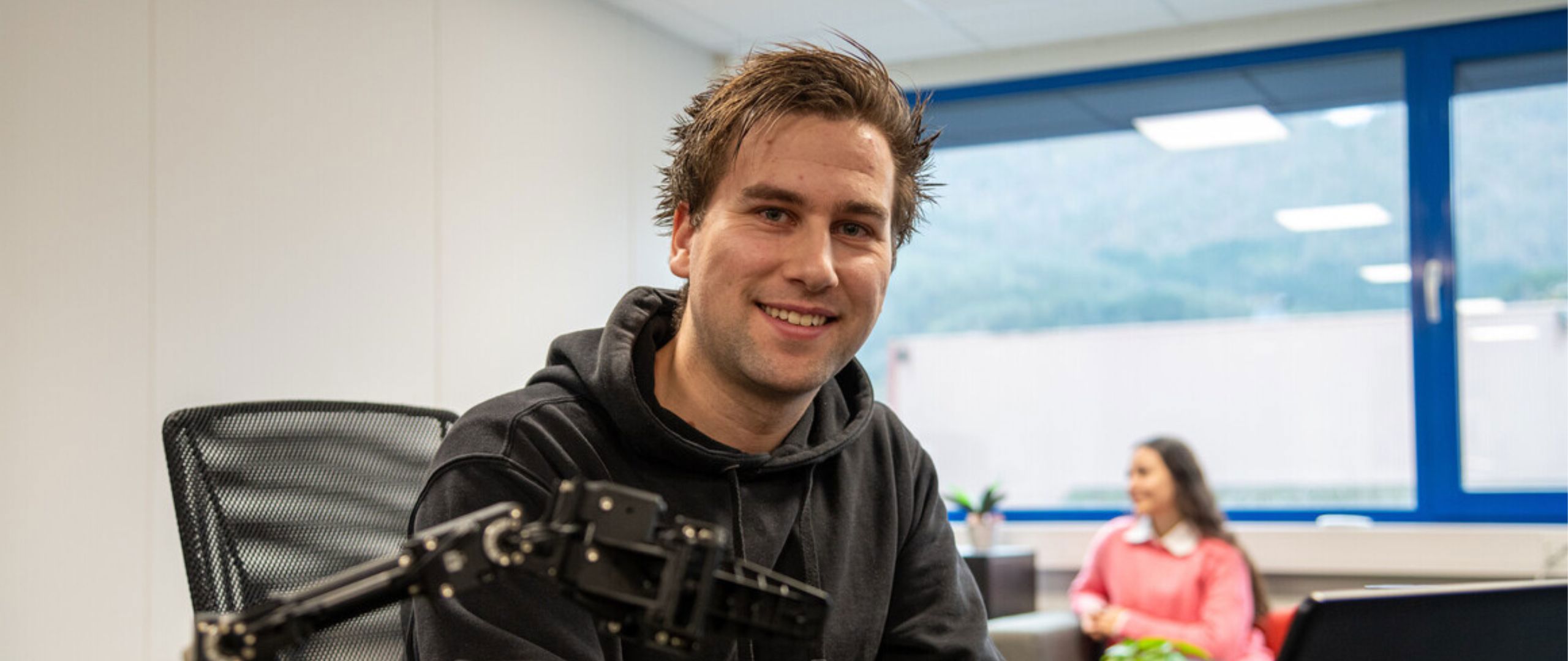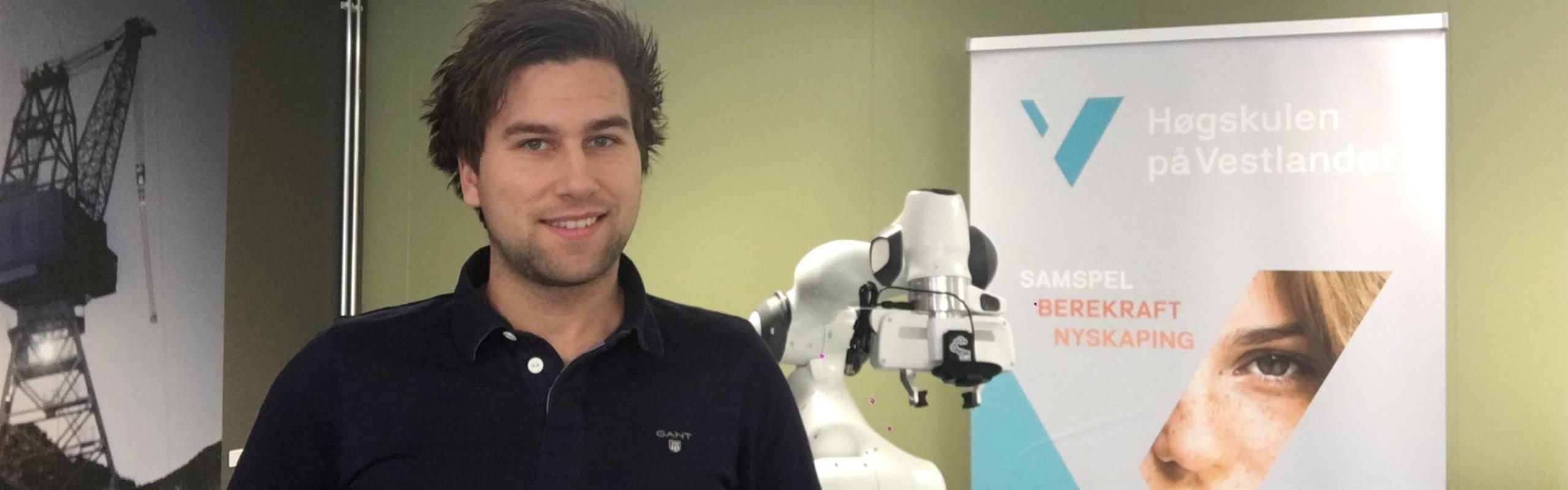 24-åringen frå Bergen har fagbrev som automatikar og studerer no automatisering med robotikk på campus Førde.