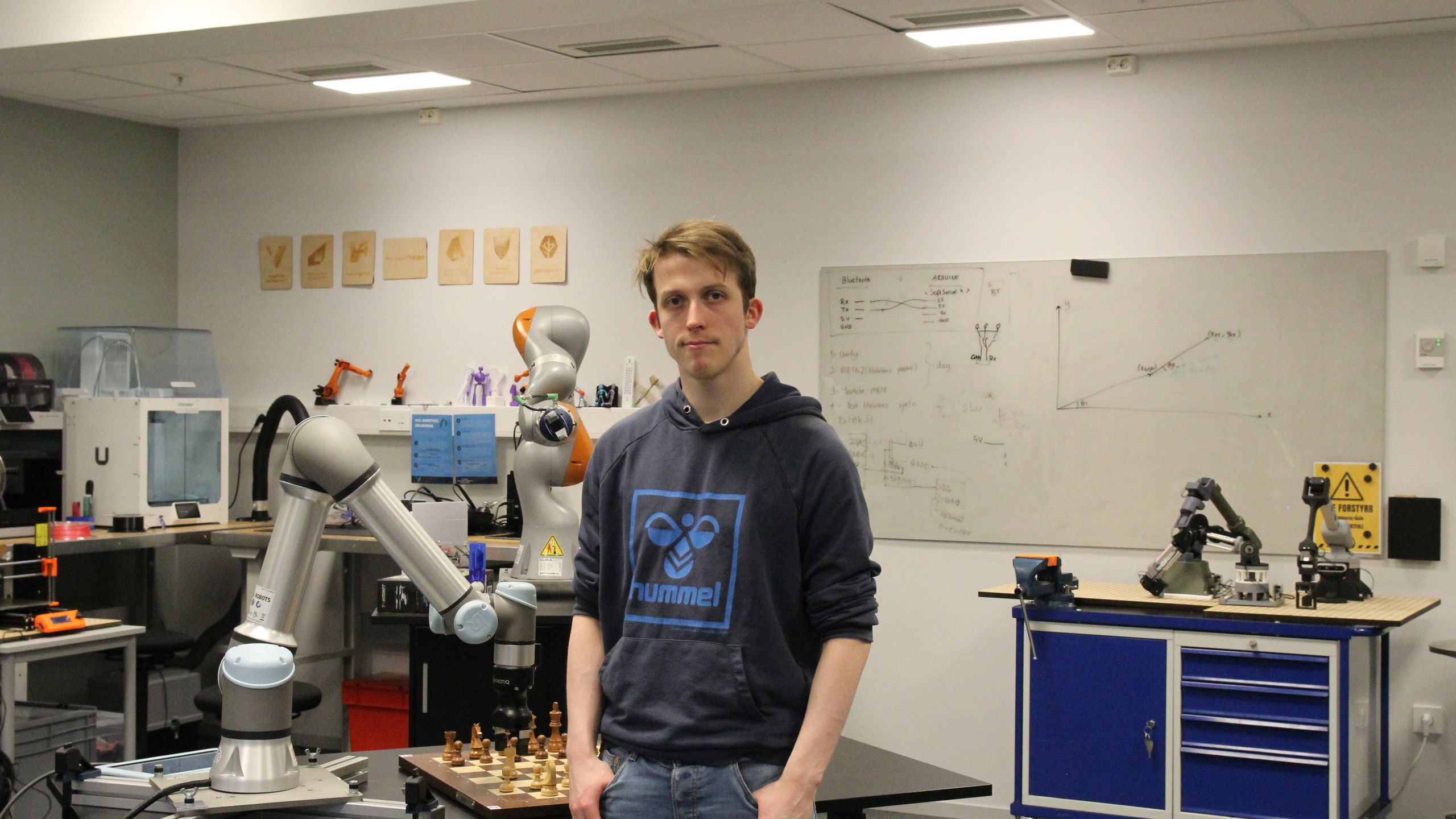 Her har han fått jobbe med ulike prosjekt, frå bygging av robotar til programmering. Martin fekk eit godt inntrykk av korleis teori blei realisert i laben.